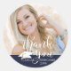 White Script Thank You Navy Blue Graduation Photo Classic Round Sticker