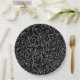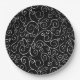 Hand-painted scrolling white curves meet and diverge in this all-over repeat design on a black background. The stylish painting is free flowing and decorative.