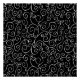 Hand-painted scrolling white curves meet and diverge in this all-over repeat design on a black background. The stylish painting is free flowing and decorative.