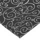 Hand-painted scrolling white curves meet and diverge in this all-over repeat design on a black background. The stylish painting is free flowing and decorative.