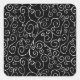 Hand-painted scrolling white curves meet and diverge in this all-over repeat design on a black background. The stylish painting is free flowing and decorative.