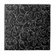 Hand-painted scrolling white curves meet and diverge in this all-over repeat design on a black background. The stylish painting is free flowing and decorative.