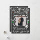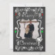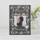 A chalkboard look background with beautiful scrolls, stars, and ornaments of white, red, and green, and white text that reads "Merry Christmas" on front and "May all your days be merry & bright" on back. This beautiful customised holiday Christmas photo card has several star ornaments, and a bird in a nest design and areas you can easily add your names, the current year, and photo!