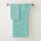 White Sea Shell Pattern Over Green Beach House Bath Towel Set