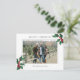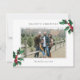 White Season's Greetings Christmas Custom Photo Holiday Card. A simple and elegant design featuring vintage holly and Christmas berries and a photo with messages you can customise. At the back of the card is a personalised message you can customise.