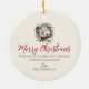White sheep in a rustic Christmas wreath with pinecones. Personalised (year on the front and text on the back) Christmas ornament for farm animal, sheep lovers.