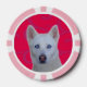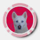 White Siberian Husky Clay Poker Chips, Pink Striped Edge