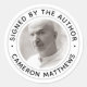 Book signing stickers featuring a photo of the author surrounded by a white border with custom text "signed by the author" and his/her name. Modern, minimal sans-serif font. Follow us on Instagram: @business.perfectlycustom and Facebook: @businessstationery for business related products, news and sales. Template photo by Chepe Nicoli
