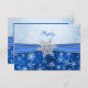 Silver snowflake on a blue snowflakes background decorated with printed image of blue ribbon RSVP Invitation