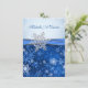 Silver snowflake on a blue snowflakes background decorated with printed image of blue ribbon Wedding Invitation