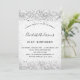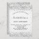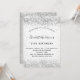 An invitation for an elegant 21th (or any age) birthday party. A chic white background on the front. Decorated with faux silver glitter. Personalize and add a name and party details. The name is written with a hand lettered style script.