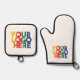 A simple and stylish business or company Oven Mitt Pot Holder Set that can be customised with your own logo and text. Customise further with your own background colour.