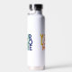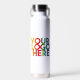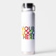 A simple and stylish business or company water bottle that can be customised with your own logo and text. Customise further with your own background colour.