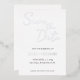 Simple, foil print wedding Save the Date card with black, stylised script on a white background. Edit names and date, etc, with your own wedding information. Change foil colour if desired.