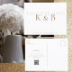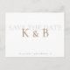 White simple monogram save the date. Postcard. Gold and grey text.