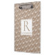 White small flowers on kraft paper rustic floral clipboard. It showcases a pattern of small flowers and leaves and your monogram on kraft style background.