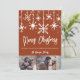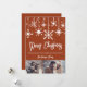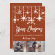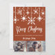 A modern white snow and hanging snowflakes in white 2 photos family elegant christmas season greeting card on boho terracotta copper.