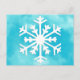 Postcard in a white snowflake, with the look of cut paper, on a soft sky blue watercolor background
