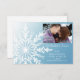 Customise the festive White Snowflake on Ice Blue Winter Wedding Save the Date Announcement Card with the personal names of the couple, picture and marriage ceremony date to announce your December, January or February winter wonderland theme nuptials. This elegant custom wintery marriage keep the date card features an intricate white snowflake adorning the corner with a gradient light blue background.
