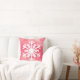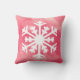 Throw pillow in a white snowflake silhouette on a soft coral pink watercolor background