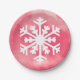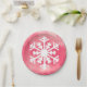 Paper plates in a white snowflake on a soft coral pink watercolor background