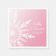 Customise the festive White Snowflake on Pink Winter Wedding Paper Napkins with the personal names of the bride and groom and December, January or February marriage ceremony date. These elegant custom winter wonderland theme disposable napkins feature an intricate white snowflake design on a gradient pink background.