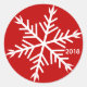 Christmas holiday stickers with a white snowflake on a bright red background. You can add the current year date.