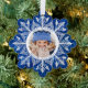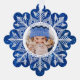 White Snowflake on Sparkly Blue Faux Glitter Photo Tree Decoration Card