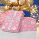 White Snowflake Pattern On Pink Background Color Wrapping Paper