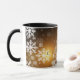Both classic and contemporary, this delightful Christmas holiday coffee mug features an attractive white snowflake Christmas tree on a gold background. Text wishes a very "Merry Christmas!" to all.