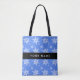 White Snowflakes, Blue, Your name, Personalise Tote Bag