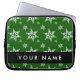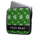 White Snowflakes, Green, Your name, Personalise Laptop Sleeve