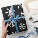 White Snowflakes On Black Background Christmas Wrapping Paper
