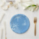 White Snowflakes on Blue Christmas Winter Party Paper Plate