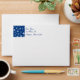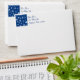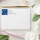 Card envelope with an insert of white snowflakes on holiday blue background. Customisable return address too.