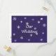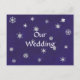 Painting of white snowflakes on a royal blue background is printed on wedding invitation postcards. Easily customise the text on the template forms.