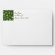 Card envelope with an insert of white snowflakes on holiday green background. Customizable return address too.