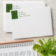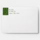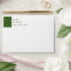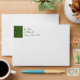 Card envelope with an insert of white snowflakes on holiday green background. Customizable return address too.