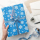 White Snowflakes on Mid Blue Winter Pattern Wrapping Paper