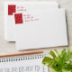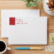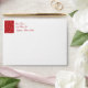 Card envelope with an insert of white snowflakes on holiday red background. Customisable return address too.