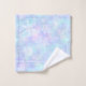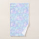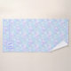 This pretty bath towel set features a wintery design with white snowflakes scattered over a mottled background of pastel hues including blue, teal, lavender and pink. Each towel has a bar across the bottom with a square for your monogram letter. Perfect for the holidays or for giving your bathroom a fresh winter feel.