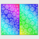 White snowflakes pattern on a diagonal rainbow coloured gradient background.