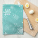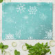 White Snowflakes Teal Tea Towel
