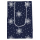White Snowflakes with Polka Dots on Navy Blue Medium Gift Bag
