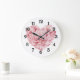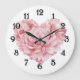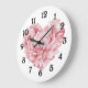 White Soft Pink Heart Flower Large Clock