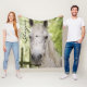 White horse personalised blanket for a horse lover. A white horse with speckles of grey looks directly at you from this cosy blanket. He has a light colour mane and black nose. This medium size blanket measures 50 x 60 inches, or choose the smaller size. The largest size will not work for this design. Perfect for a teenage daughter who loves horses.