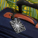 white spider web luggage tag