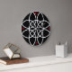 Black and white wall clock with red numbers. Numbers can be removed or the red colour changed.