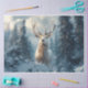 Step into a mystical winter forest with this stunning artwork of a white stag amidst snow-covered trees. The serene atmosphere and ethereal presence of the stag evoke a sense of magic and tranquillity, making it a perfect piece for nature lovers and those captivated by mythical creatures.