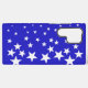 Twinkling star pattern with white stars on dark blue sky or space. Modern playful design.